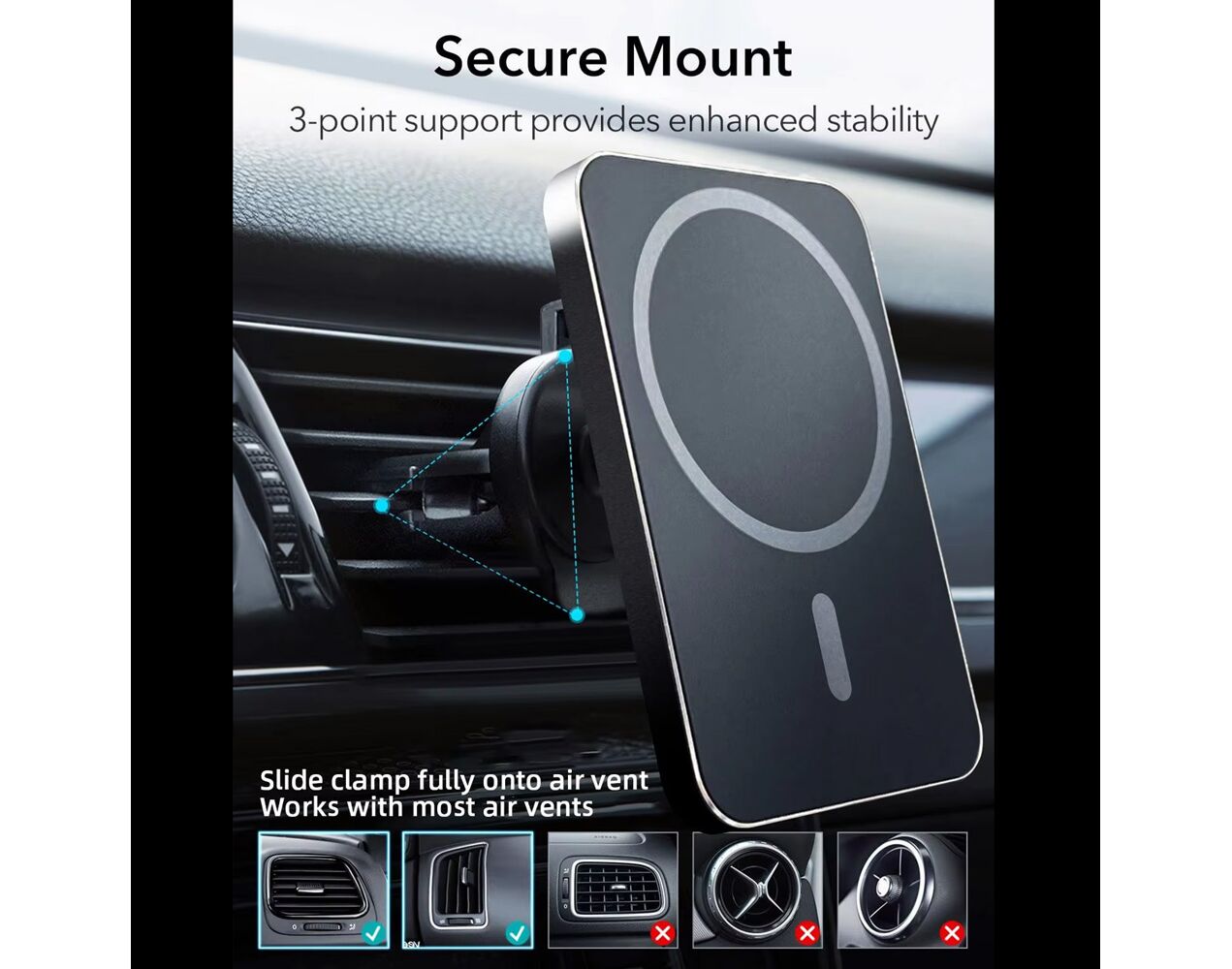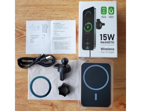 Auto Drzac magnetic Magsafe punjac 15W crni