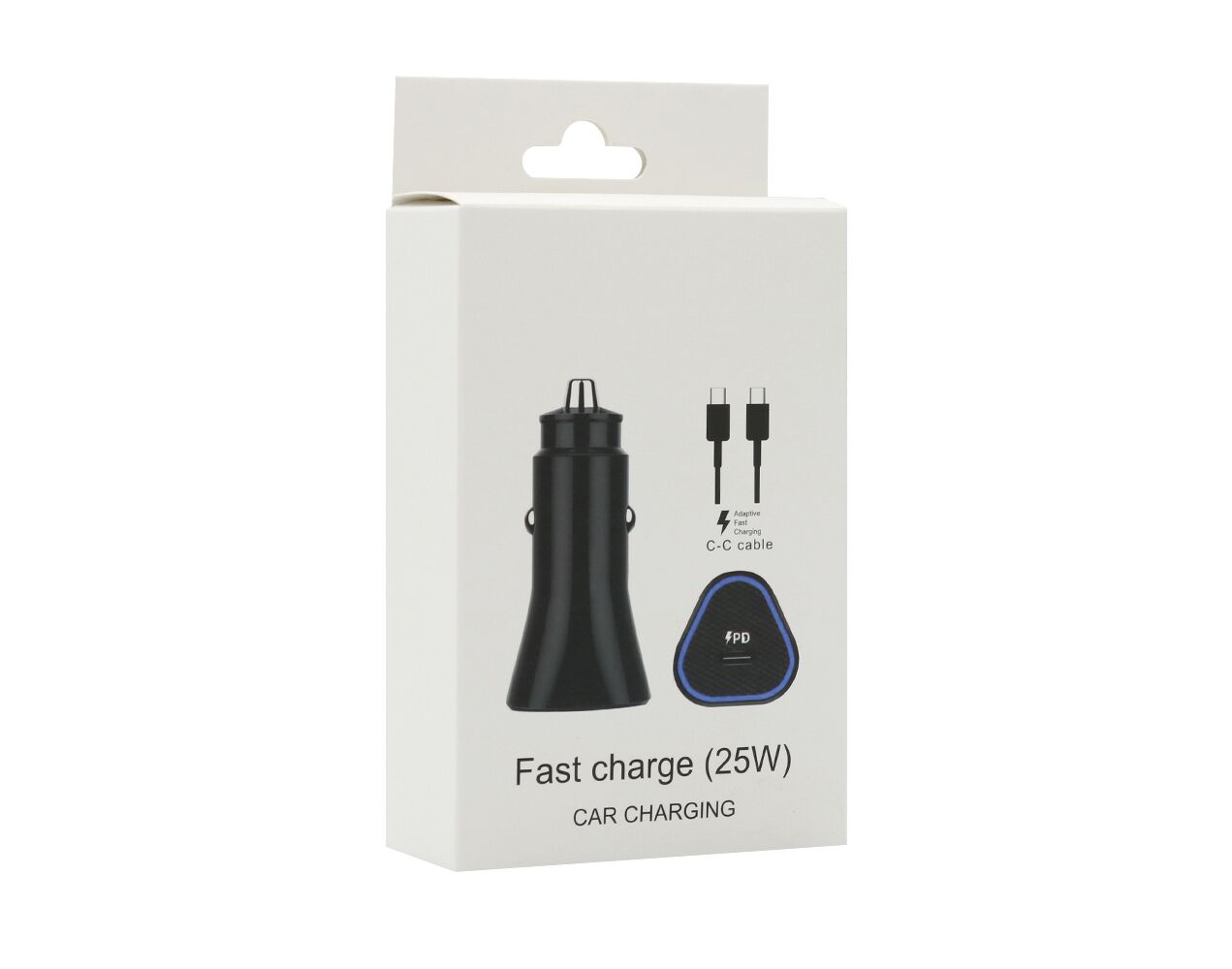 Auto punjac 25W Type-C ulaz sa Type-C na Type-C kablom crni (MS)