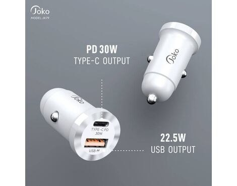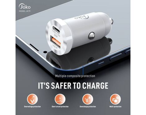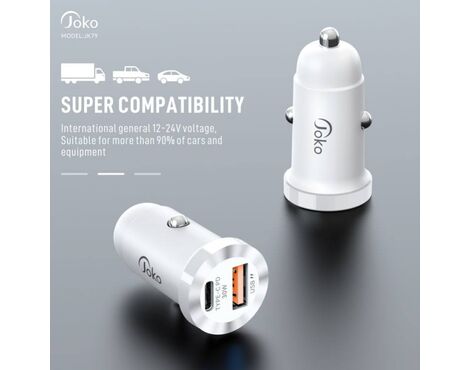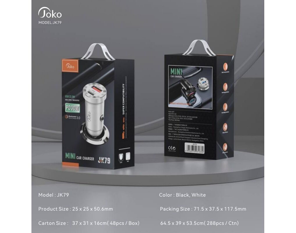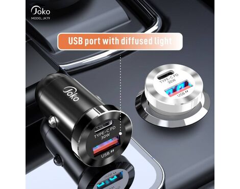 Auto punjac KONFULON JK79, 3A, QC3.0 22.5W, PD 30W crni