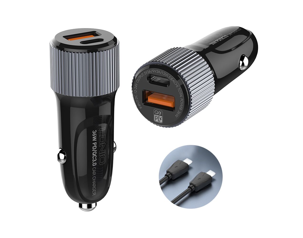 Auto punjac LDNIO C510Q PD/QC3.0 36W sa Type C na Type C kablom