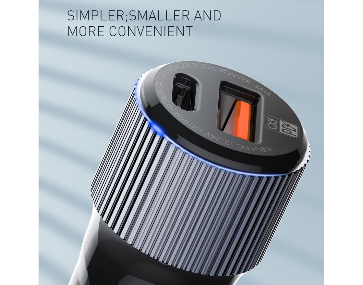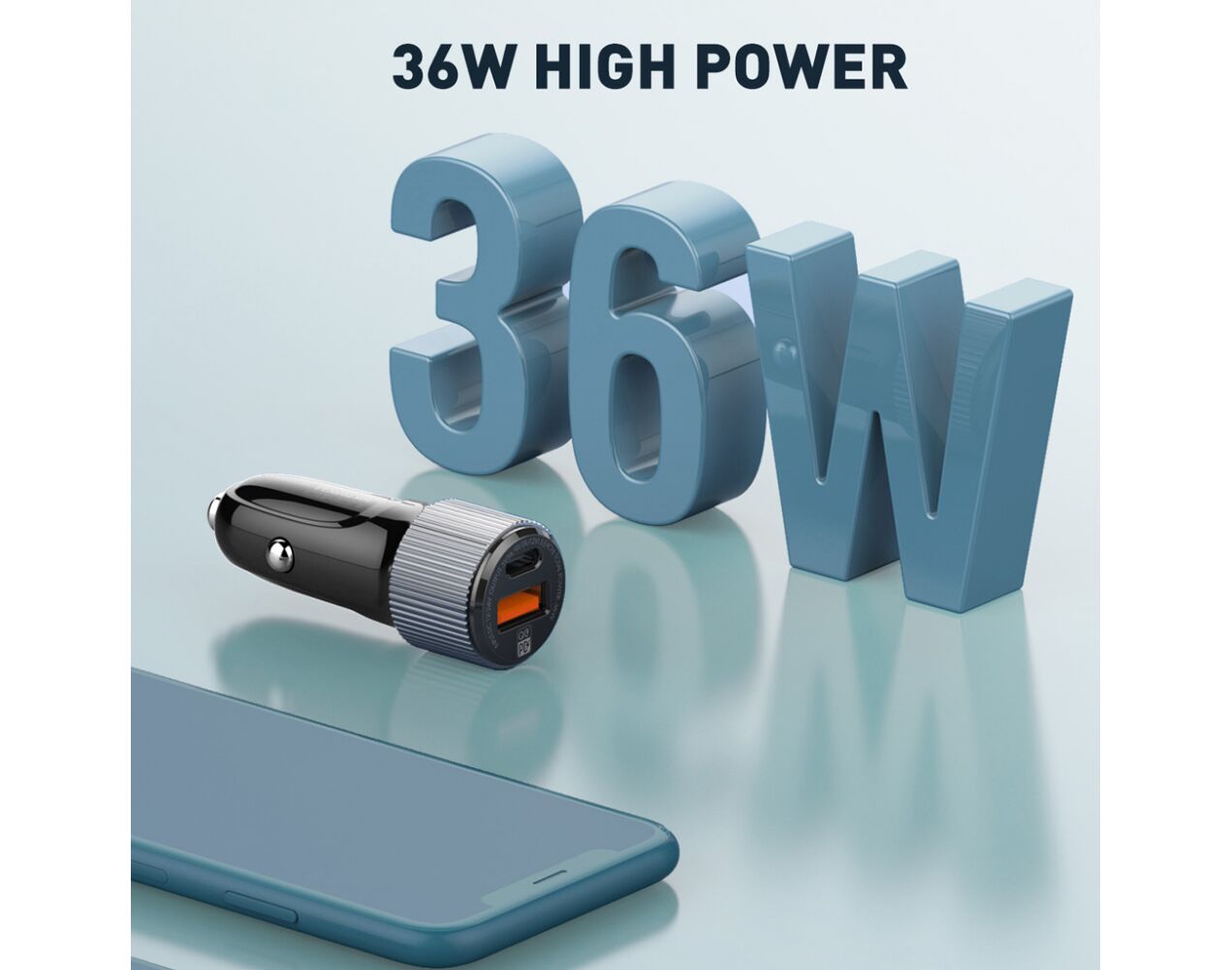 Auto punjac 30W USB-A + Type-C ulaz sa Type-C na Lightning kablom sivi (MS)