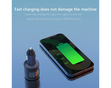 Auto punjac KONFULON C80Q, 3.6A, QC3.0 22.5W, PD 30W sivi