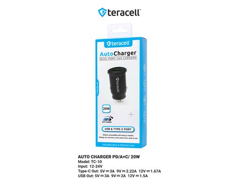 Auto punjac Teracell Evolution TC-10 PD 20W, USB QC3.0 15W crni