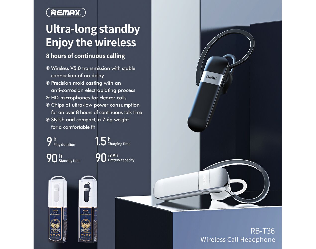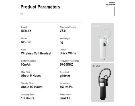 Bluetooth slusalica REMAX RB-T36 crna