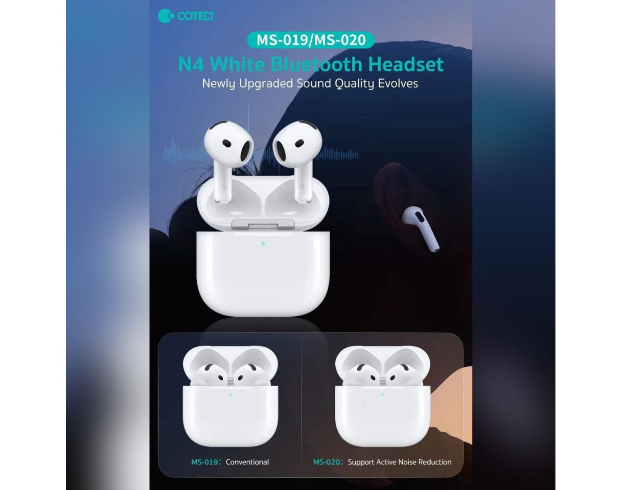 Uživajte u vrhunskom bežičnom zvuku uz Coteci N4 ANC MS-020 Bluetooth slušalice. Zahvaljujući funkciji aktivnog poništavanja buke (ANC) i ergonomskom polu-ušnom dizajnu, ove slušalice pružaju bogat i jasan zvuk uz izuzetnu udobnost. Sa produženim trajanjem baterije i brzom funkcijom punjenja, idealne su za svakodnevna putovanja, treninge i duža slušanja.