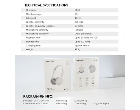 Bluetooth slusalice Fantech GO Air WH02 sive