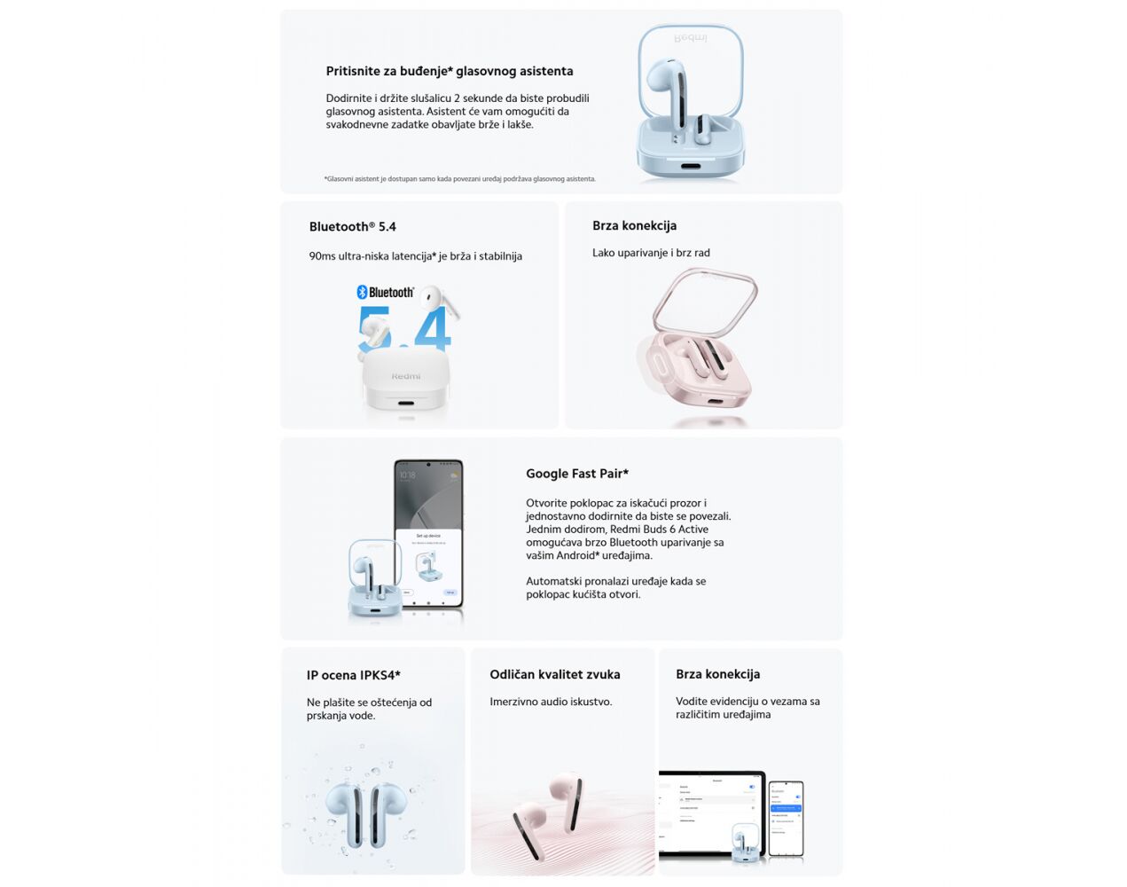 Bluetooth slusalice Xiaomi Redmi Buds 6 Active bele