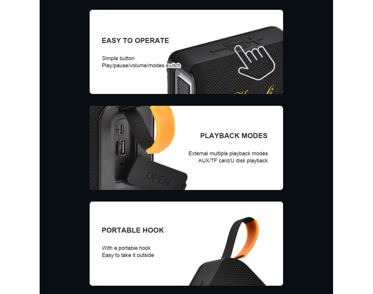Podržane funkcije: AUX / Bluetooth / USB / TF kartica / U disk / hands-free pozivi / FM