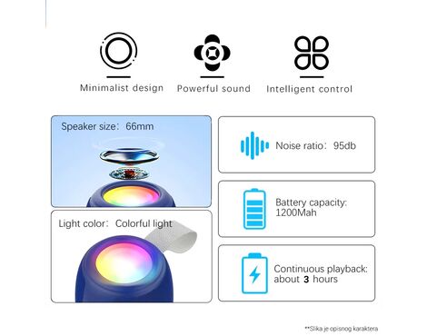 Funkcije:BT/ FM/ TF/ RGB/ Phone/USB/ TWS