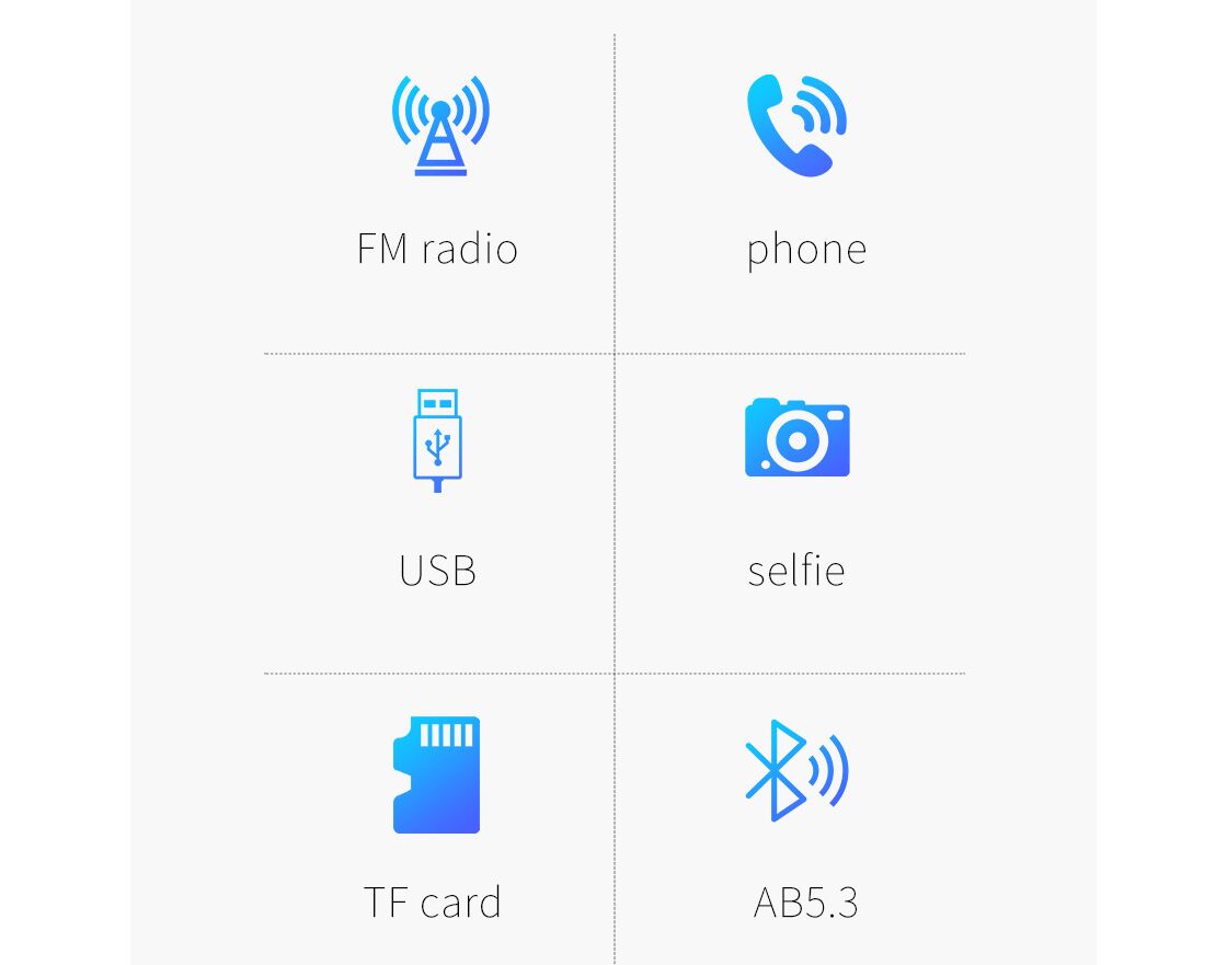 - TF kartice, FM radio, selfi, TWS, LED displej
