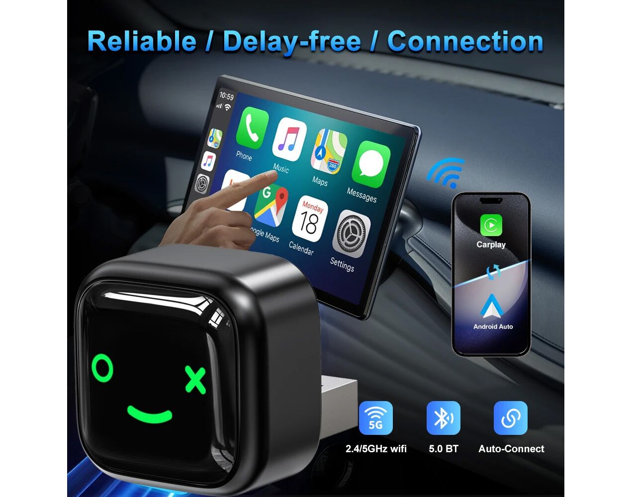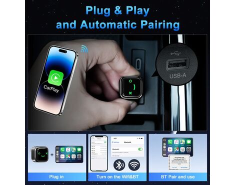 Nije potrebno komplikovano podešavanje. Jednostavno uparite putem Bluetooth-a i CarPlay bežični adapter je spreman za upotrebu. Automatski se ponovo povezuje svaki put kada pokrenete automobil, osiguravajuc´i iskustvo bez problema. Sa najnovijom Bluetooth tehnologijom, uživajte u dvostrukoj brzini i pokrenite CarPlay pre nego što čak i promenite brzinu!