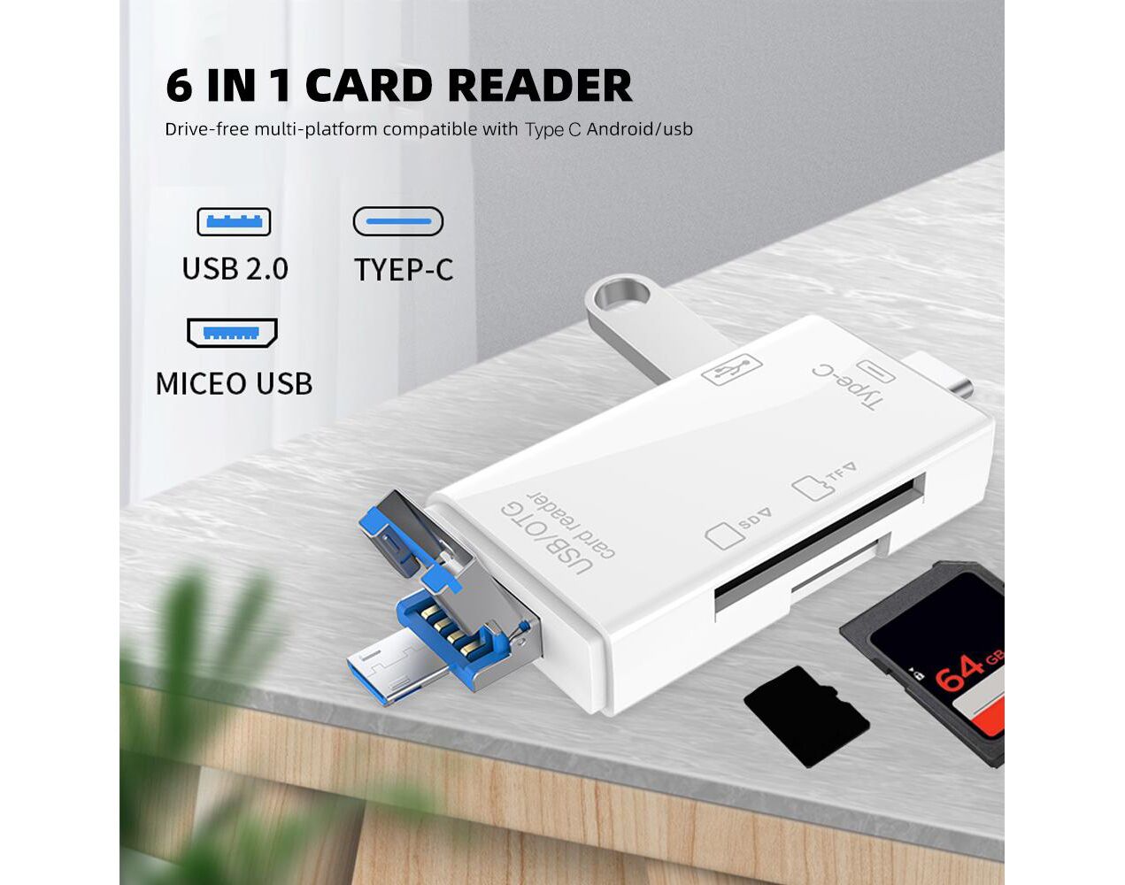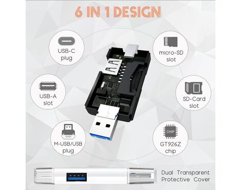 Citac kartica USB JWD 6u1 OTG beli