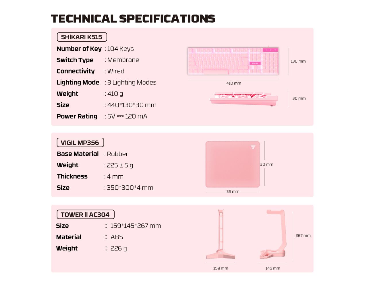 Combo set Gaming Fantech P51 Power 5u1 Sakura