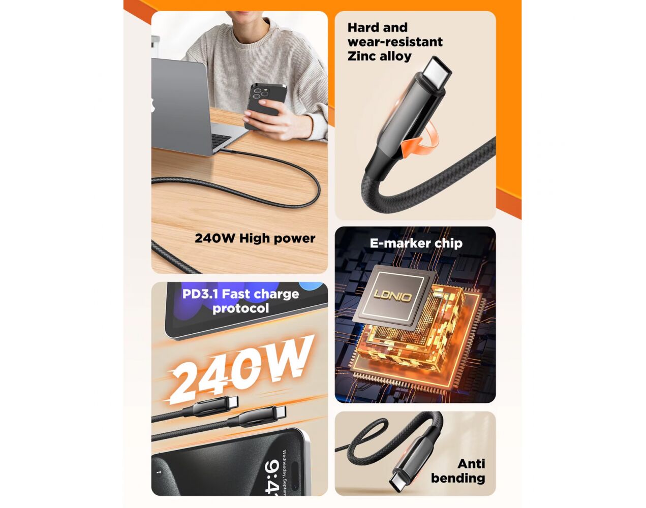 LDNIO LC921C USB-C na USB-C kabl je savršena kombinacija punjenja velikom snagom, sinhronizacije podataka i izdržljivosti, sve to u fleksibilnom i ekološkom dizajnu. Bilo da ste kod kuće, na poslu ili u pokretu – ovaj kabl lako ispunjava sve vaše potrebe za punjenjem i prenosom podataka.