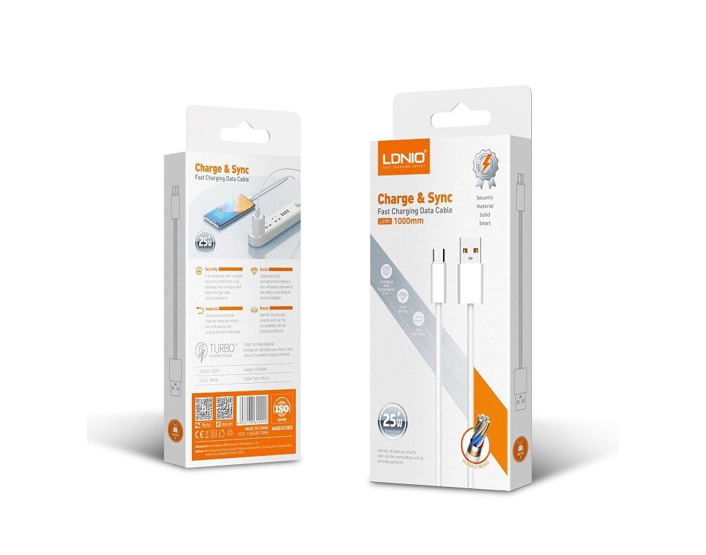 Data kabl LDNIO LS901 25W Fast micro USB beli 1m