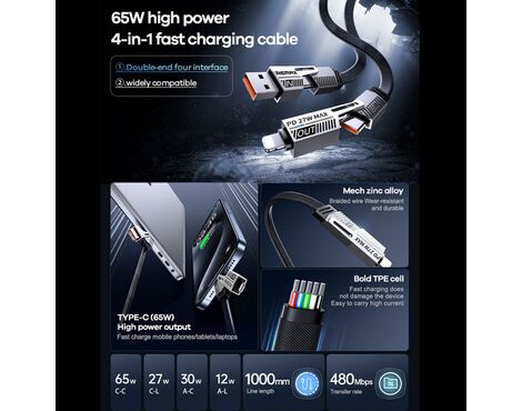 Data kabl REMAX RC-C189 65W 4-in-1 Fast Charging crni 1m