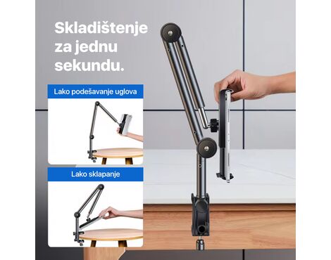 Zahvaljujući fleksibilnoj konstrukciji i kuglasti 360° glavi, lako podešavate položaj tableta bez potrebe da svaki put savijate celu ruku držača.