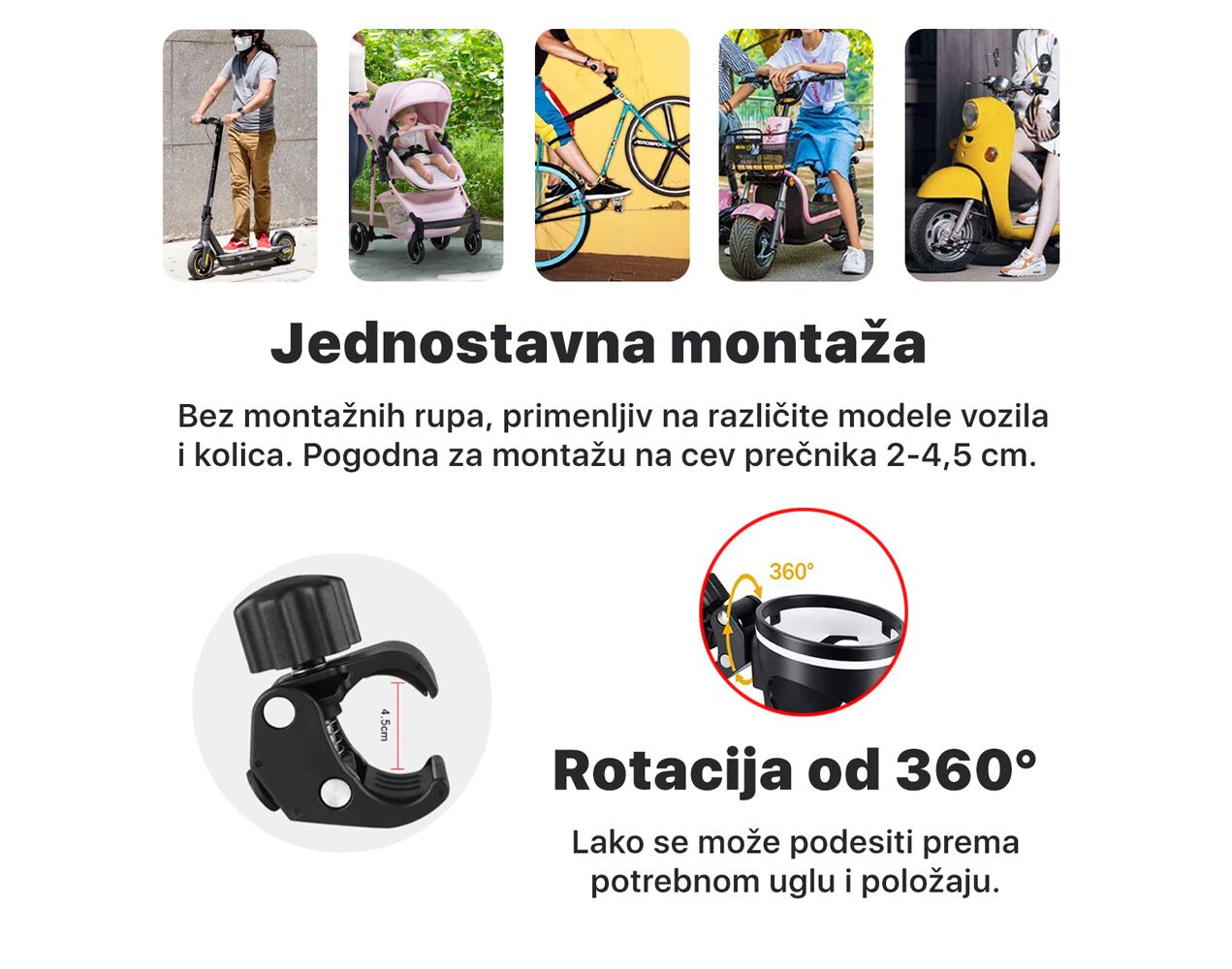 Drzac - casu za elektricni trotinet crni