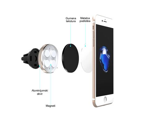 Drzac - mobilni telefon magnetni ROHS C9 srebrni (ventilacija) (MS)