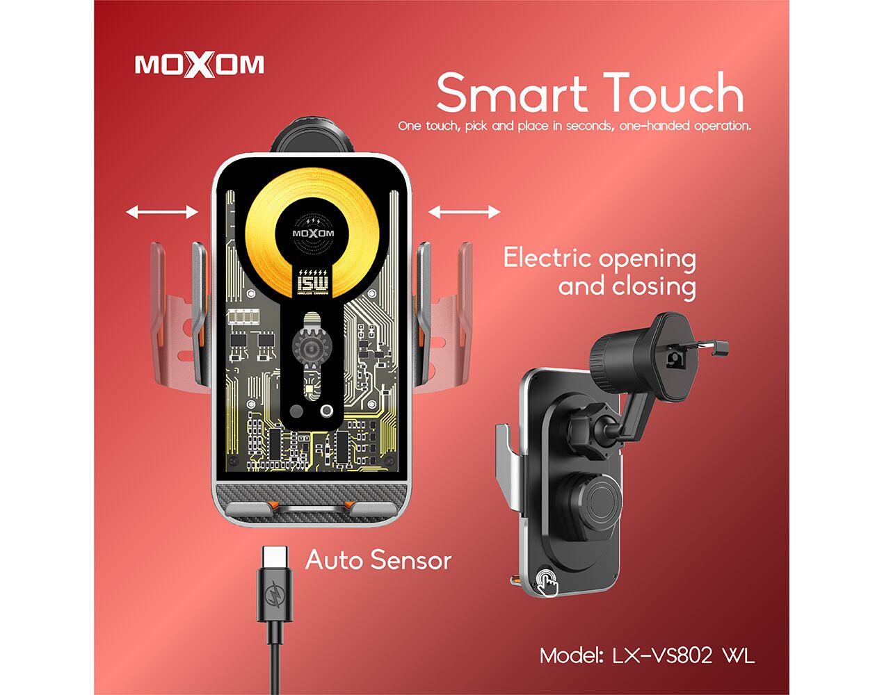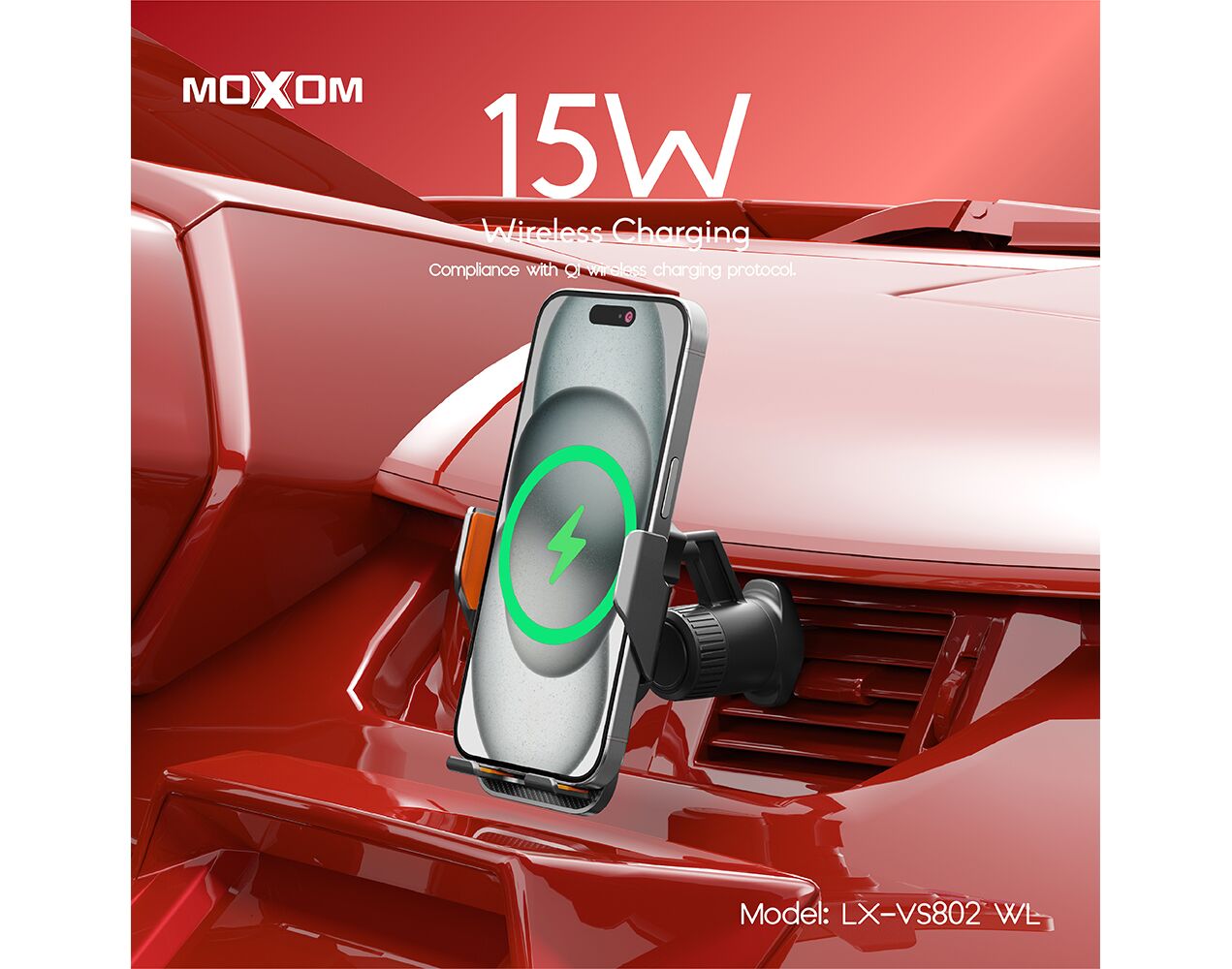 Drzac - mobilni telefon Moxom LX-VS802 sa bezicnim punjenjem 15W crni (MS)