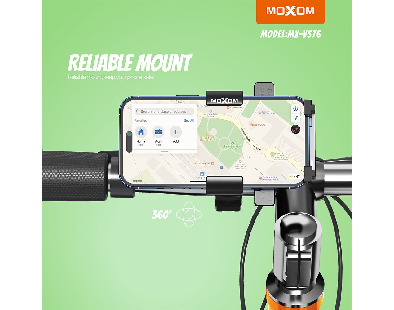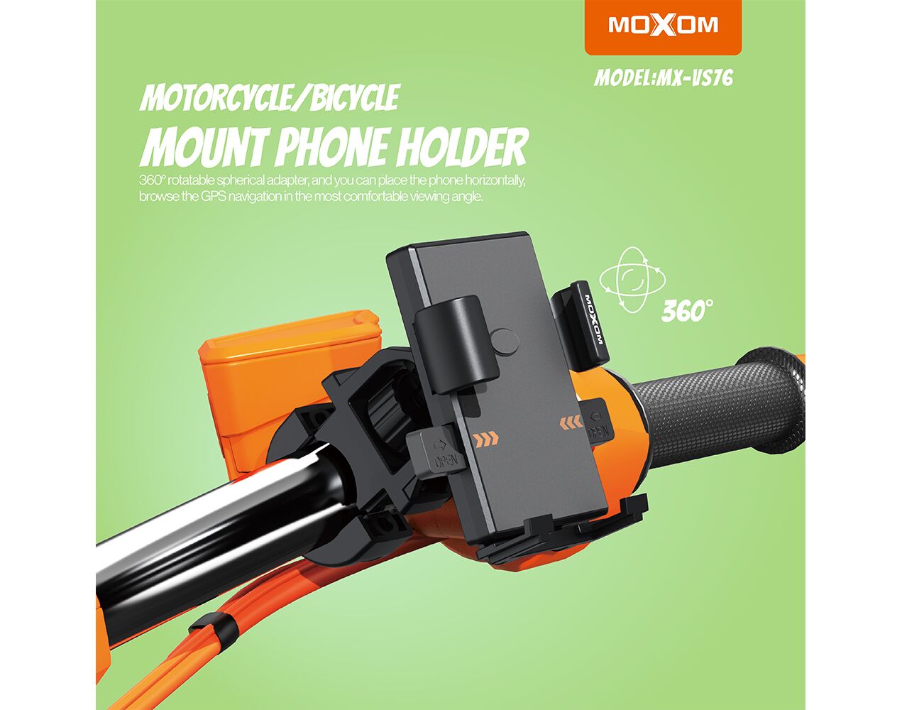 Drzac - mobilni telefon MOXOM MX-VS76 za bicikl i motor crni (MS)