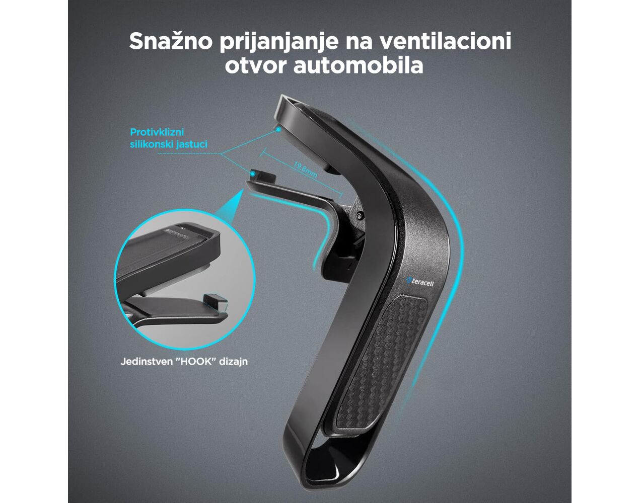 • Kompatibilan sa većinom ventilacionih otvora automobila (pogledajte sliku)