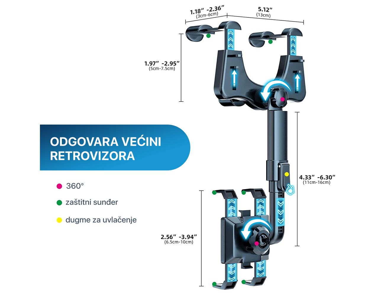Drzac za mobilni telefon za retrovizor 4.7" - 6.7"