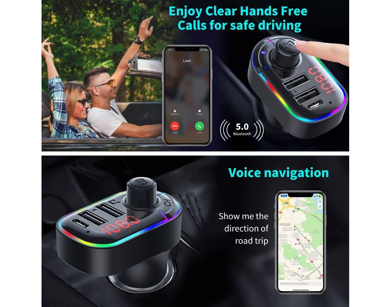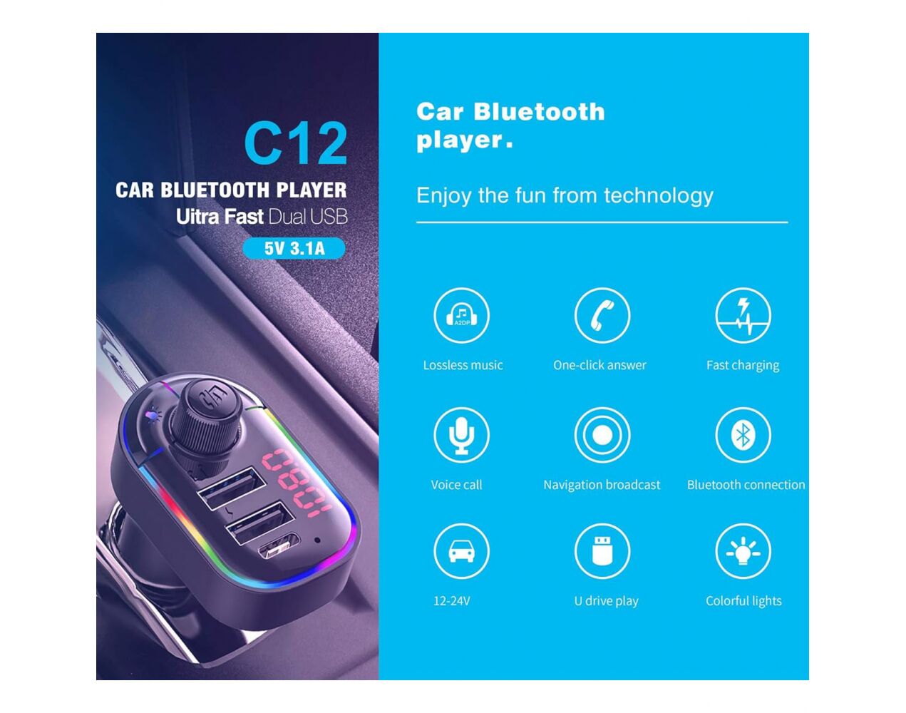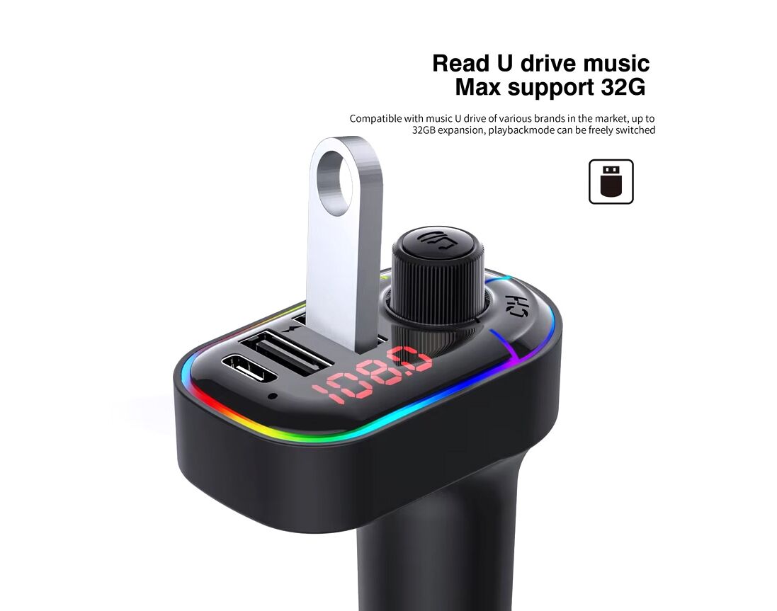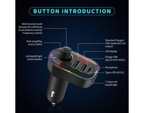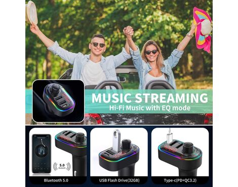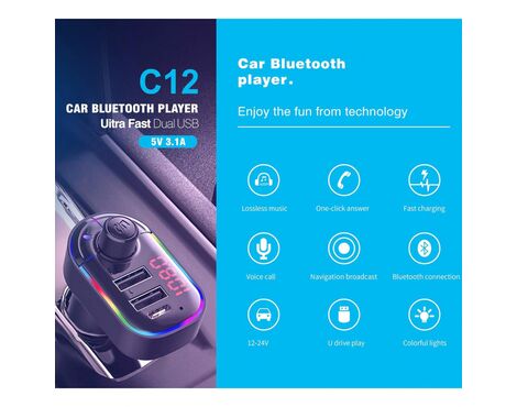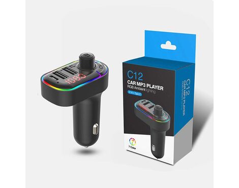 FM transmiter C12 USB PD Bluetooth 5.0 12-24V Handsfree slušalica crni