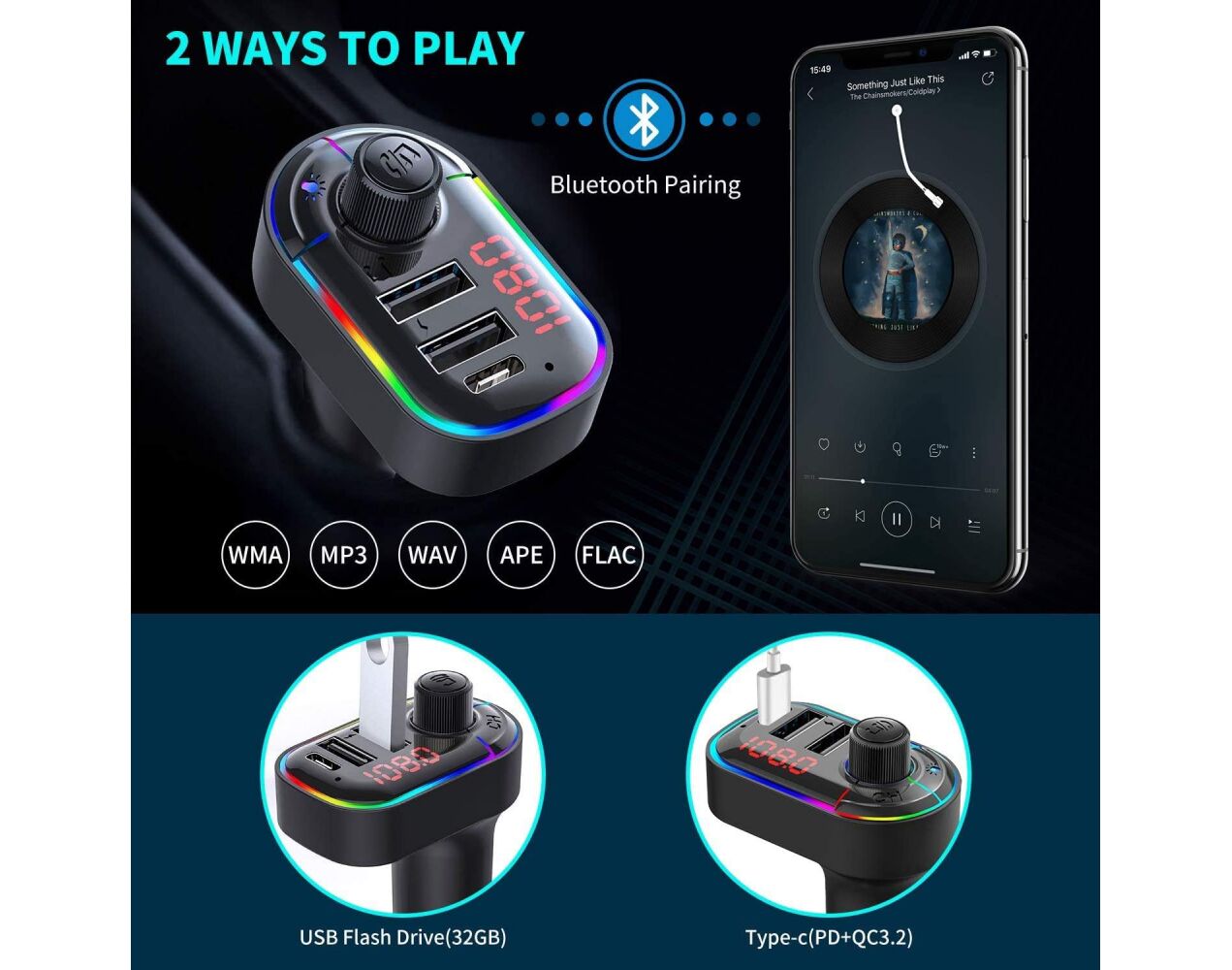 FM modulator FM-P2 PD+QC3.0 crni (MS)