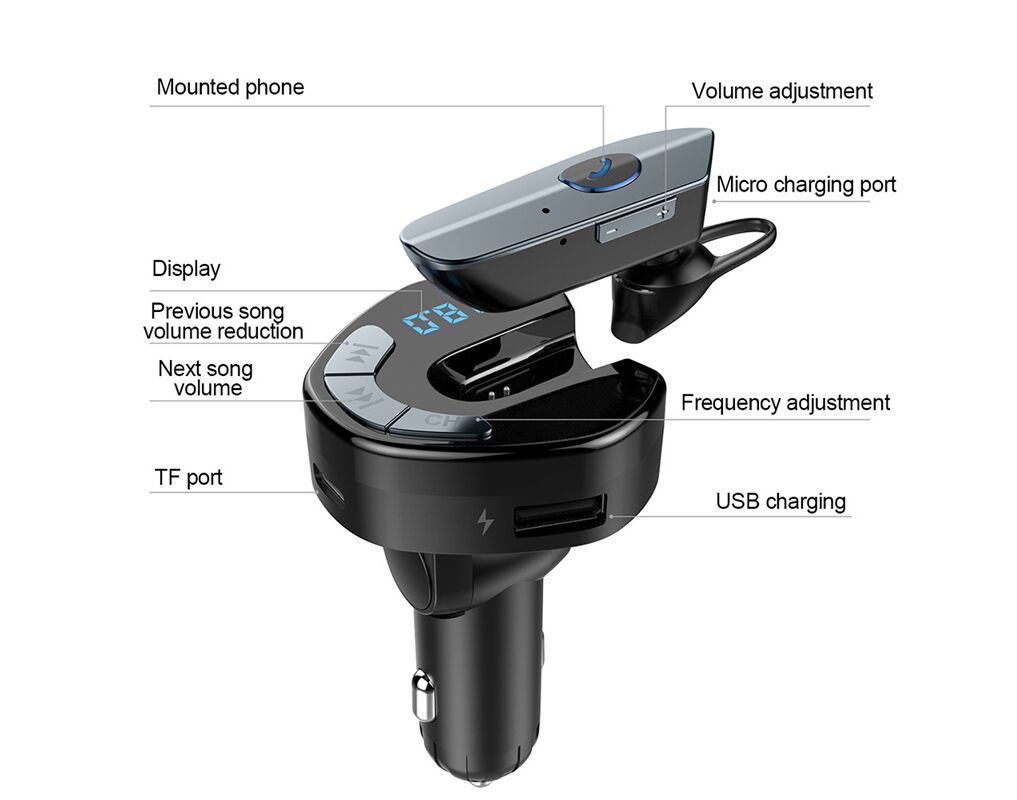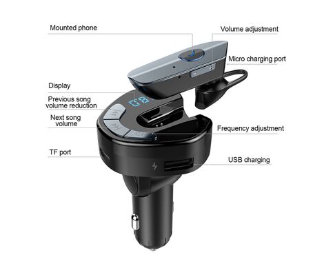 FM transmiter V8 USB TF Bluetooth 5.0 12-24V Handsfree slušalica crni