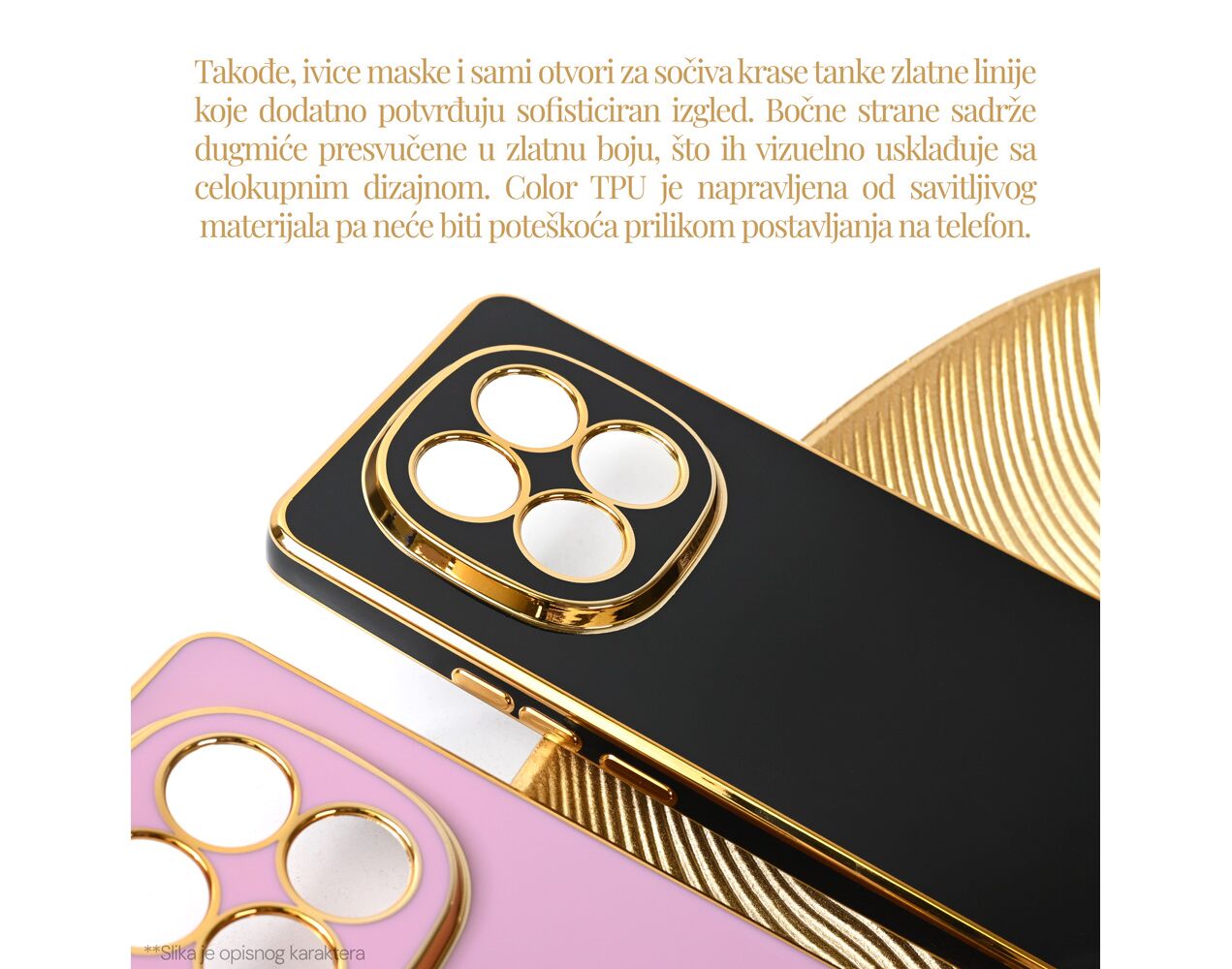 Kamera - lepa i bezbedna - Podignuti zlatni okvir oko kamera ne samo da doprinosi luksuznom izgledu, već i štiti sočiva od ogrebotina, udaraca i prašine.