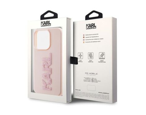 Futrola Karl Lagerfeld 3D Rubber Glitter Logo - iPhone 15 Pro 6.1 roze (KLHCP15L3DMBKCP)