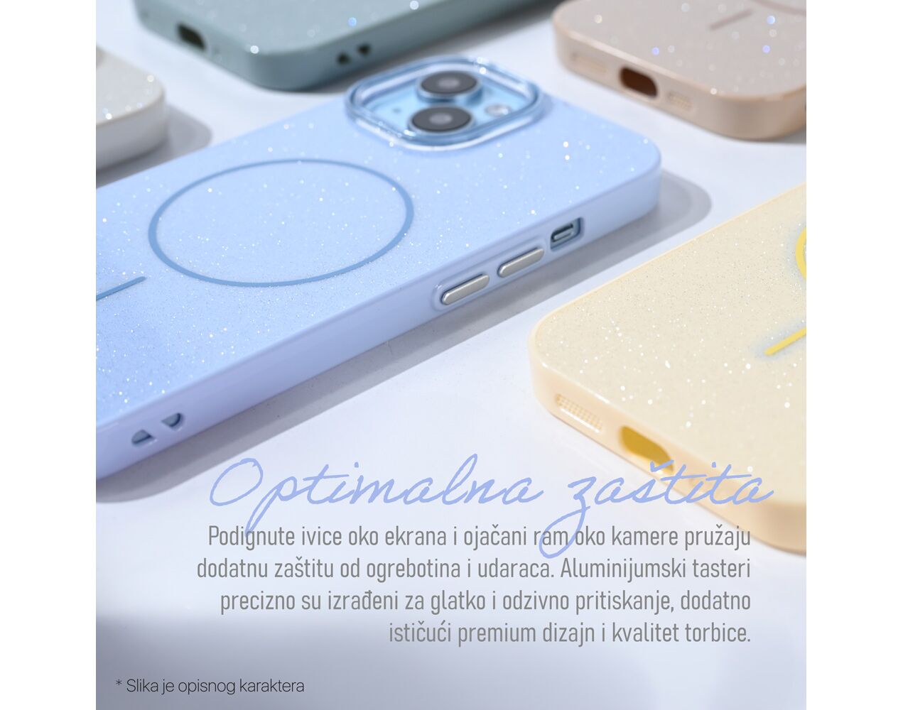 Visokokvalitetni TPU materijali - Magsafe Sparkle Dust ima atraktivnu tvrdu poleđinu sa šljokicama, dok mekane ivice i ojačani uglovi obezbeđuju otpornost na padove i laku instalaciju.