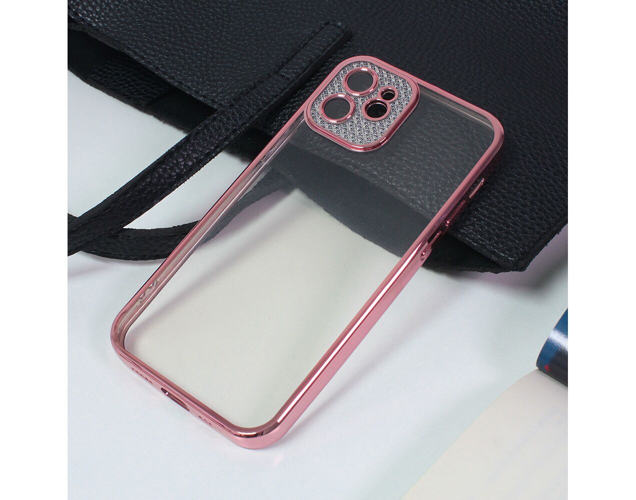 Futrola Silikon Camera Diamond iPhone 12 6.1 roze