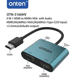 Adapter 4u1 HDMI 2K 30Hz na HDMI 2K 60Hz + VGA 2K 60Hz + USB Type-C 5V + jack 3.5mm 17cm (OTN-5166HV) Onten (MS)