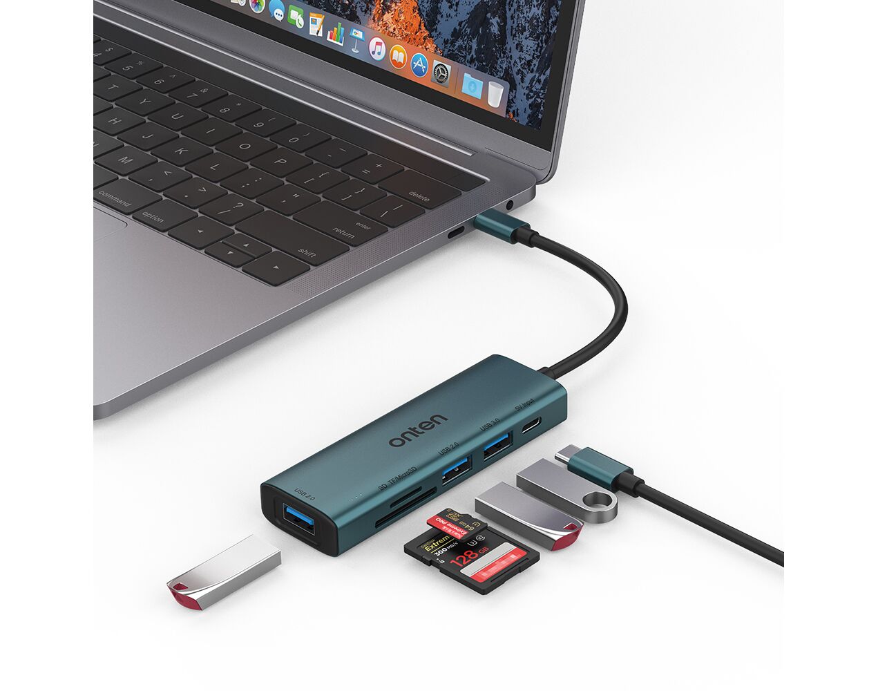 Hub USB Type-C sa 4 porta (2x USB 2.0 + 1x USB 3.0 + USB Type-C 5V) + citac kartica SD + TF 16cm (OTN-UC120) Onten (MS)