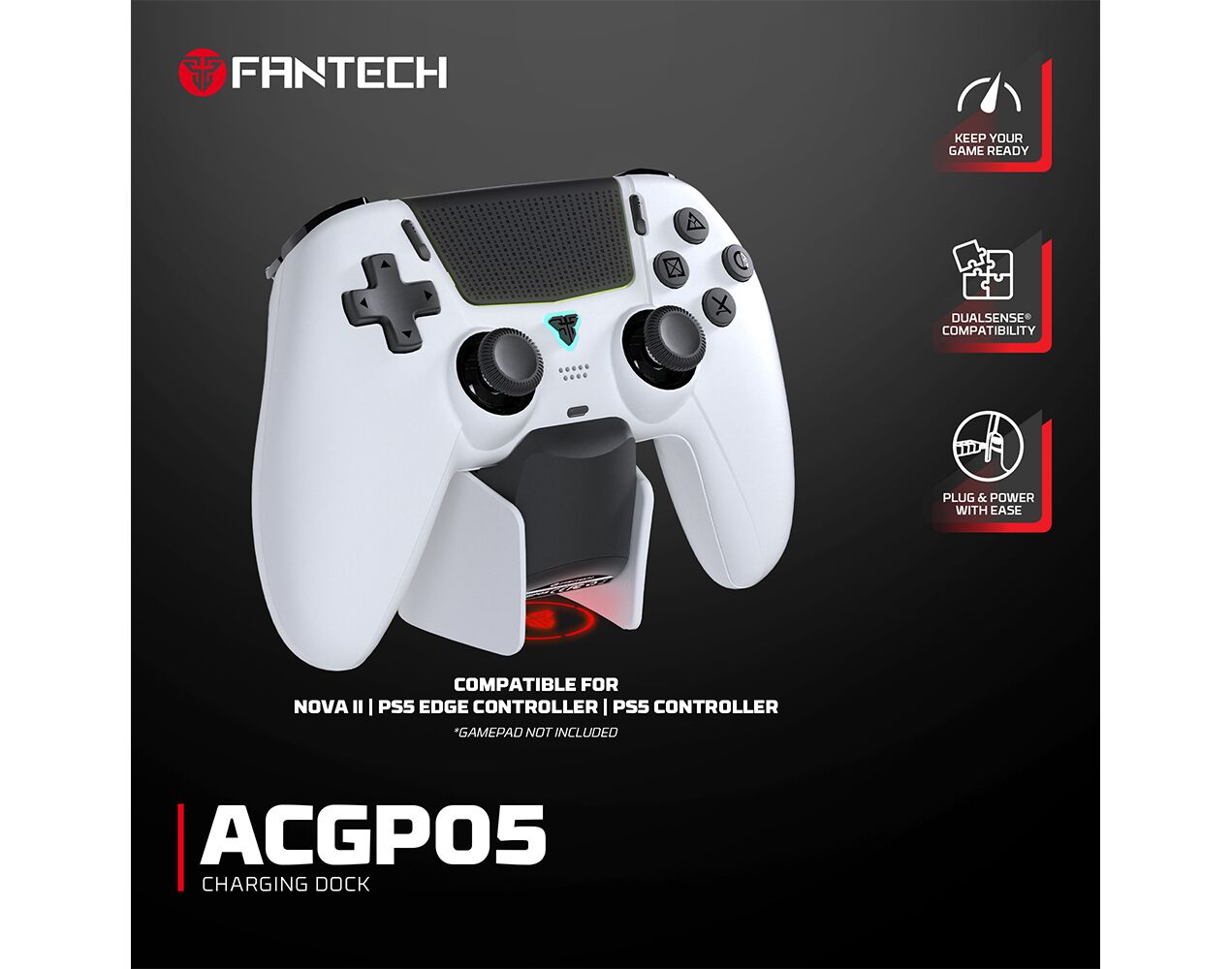 Joypad wireless charging Dock station Fantech ACGP05 WGP16, PS5 compatible beli
