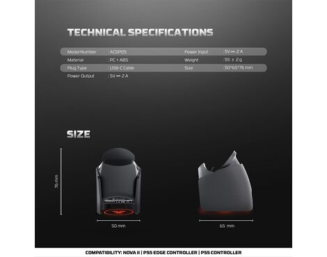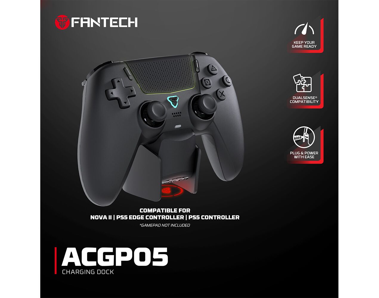 Joypad wireless charging Dock station Fantech ACGP05 WGP16, PS5 compatible crni