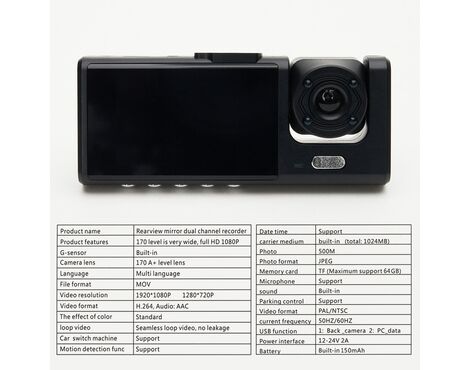 Auto kamera L1031 dual lens - retrovizor + rikverc kamera (MS)