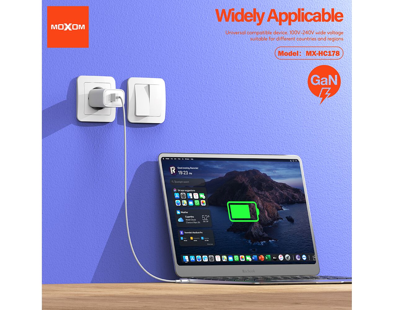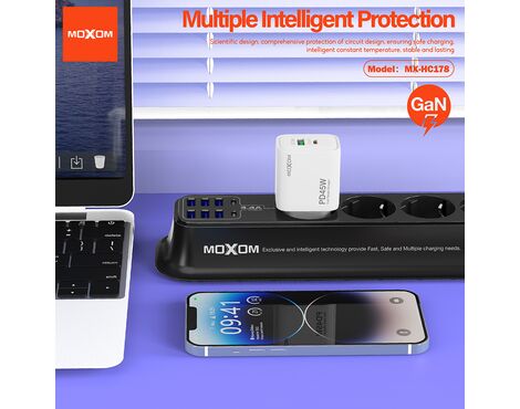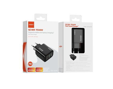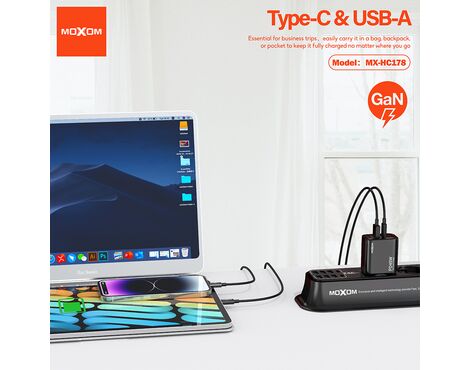 Kuciste punjaca Moxom MX-HC178 GaN USB+Type-C QC 18W PD 45W crno (MS)