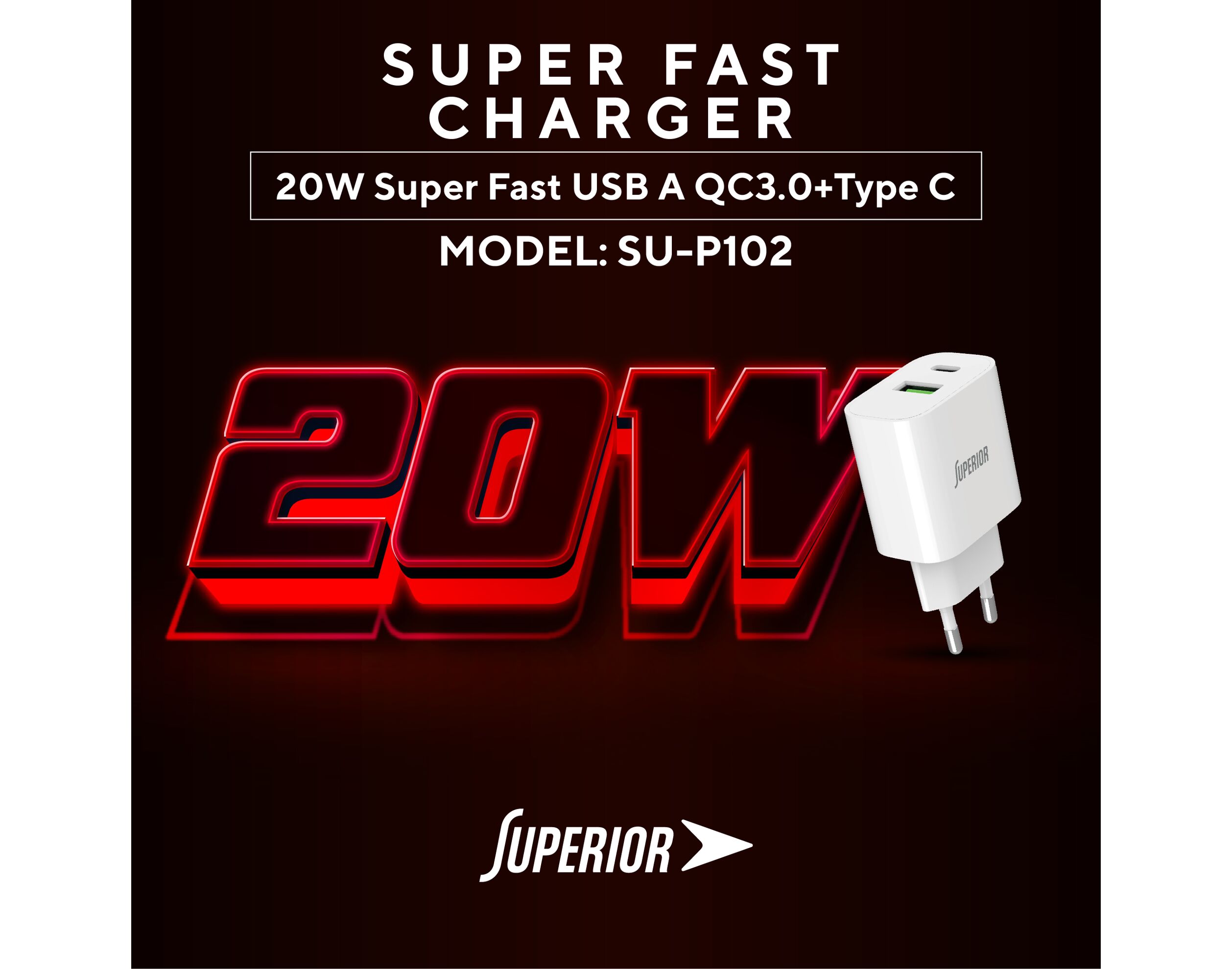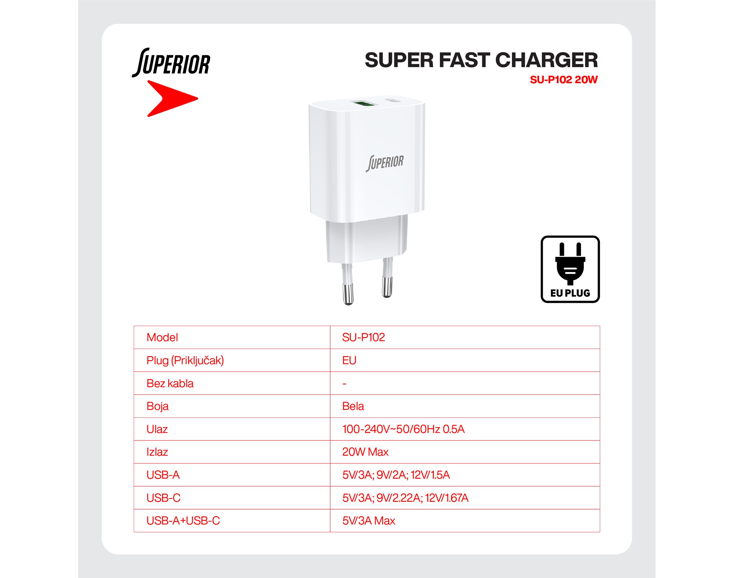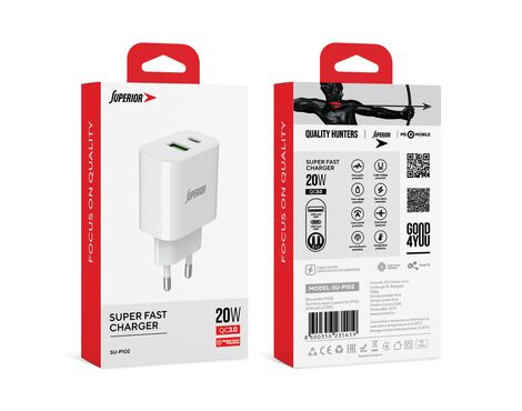 Kuciste punjaca Superior SU-P102 20W Super Fast USB A QC3.0+Type C belo (CERT) (MS)