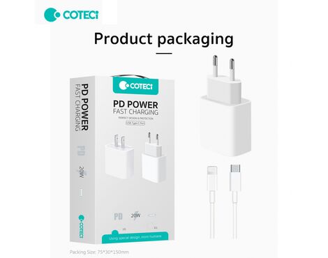 Kucni punjac Coteci CS5193 20W sa PD na lightning kablom beli - Kućni punjač je sastavni deo svakodnevnog korišćenja mobilnog telefona. Od kvalitetnog punjača zavisi radni vek baterije, tako da će Vam ovaj punjač omogućiti brzo i kvalitetno punjenje. Kućni punjač za Kucni punjac Coteci CS5193 20W sa PD na lightning kablom beli je atestiran, dolazi sa garancijom i vrhunskog je kvaliteta.