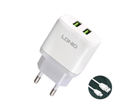 Kucni punjac LDNIO A2221 2xUSB, 12W sa Type C kablom beli - Kućni punjač je sastavni deo svakodnevnog korišćenja mobilnog telefona. Od kvalitetnog punjača zavisi radni vek baterije, tako da će Vam ovaj punjač omogućiti brzo i kvalitetno punjenje. Kućni punjač za Kucni punjac LDNIO A2221 2xUSB, 12W sa Type C kablom beli je atestiran, dolazi sa garancijom i vrhunskog je kvaliteta.