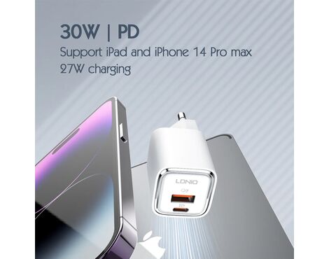 Kucni punjac LDNIO A2317C, 3.6A, QC3.0 18W, PD 30W sa Iphone lightning kablom beli - Kućni punjač je sastavni deo svakodnevnog korišćenja mobilnog telefona. Od kvalitetnog punjača zavisi radni vek baterije, tako da će Vam ovaj punjač omogućiti brzo i kvalitetno punjenje. Kućni punjač za Kucni punjac LDNIO A2317C, 3.6A, QC3.0 18W, PD 30W sa Iphone lightning kablom beli je atestiran, dolazi sa garancijom i vrhunskog je kvaliteta.