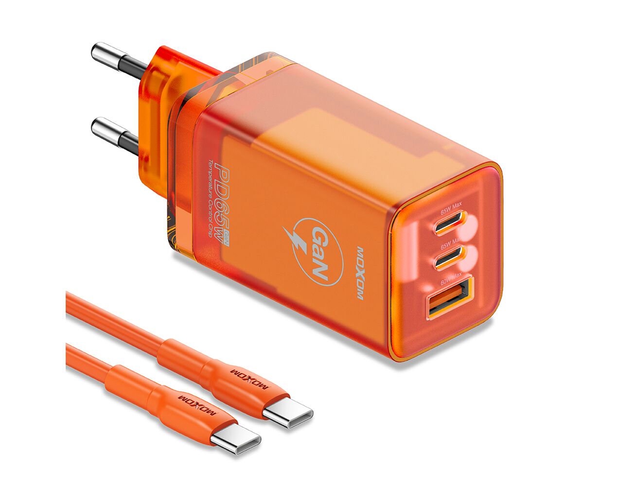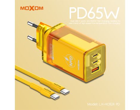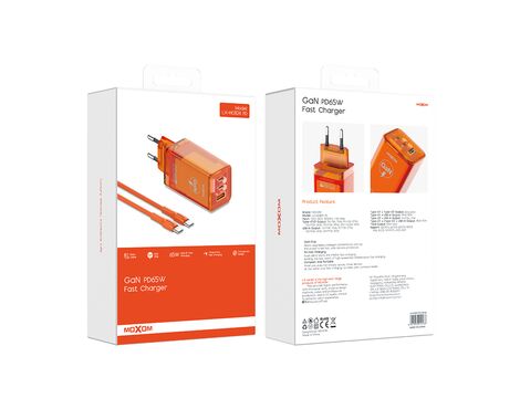 Kucni punjac MOXOM LX-HC824 65W PD Type C na Type C narandzasti (MS) - Kućni punjač je sastavni deo svakodnevnog korišćenja mobilnog telefona. Od kvalitetnog punjača zavisi radni vek baterije, tako da će Vam ovaj punjač omogućiti brzo i kvalitetno punjenje. Kućni punjač za Kucni punjac MOXOM LX-HC824 65W PD Type C na Type C narandzasti (MS) je atestiran, dolazi sa garancijom i vrhunskog je kvaliteta.