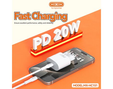 Kucni punjac Moxom MX-HC151 20W Type-C na Lightning beli (MS) - Kućni punjač je sastavni deo svakodnevnog korišćenja mobilnog telefona. Od kvalitetnog punjača zavisi radni vek baterije, tako da će Vam ovaj punjač omogućiti brzo i kvalitetno punjenje. Kućni punjač za Kucni punjac Moxom MX-HC151 20W Type-C na Lightning beli (MS) je atestiran, dolazi sa garancijom i vrhunskog je kvaliteta.