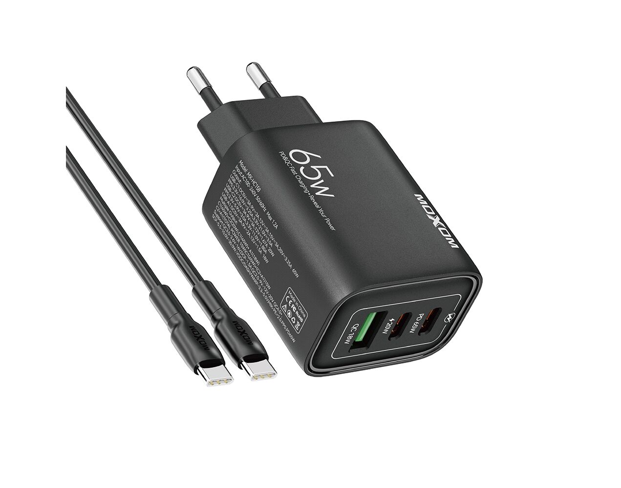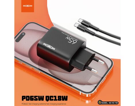 Kucni punjac Moxom MX-HC158 QC3.0 65W Type-C na Type-C crni (MS) - Kućni punjač je sastavni deo svakodnevnog korišćenja mobilnog telefona. Od kvalitetnog punjača zavisi radni vek baterije, tako da će Vam ovaj punjač omogućiti brzo i kvalitetno punjenje. Kućni punjač za Kucni punjac Moxom MX-HC158 QC3.0 65W Type-C na Type-C crni (MS) je atestiran, dolazi sa garancijom i vrhunskog je kvaliteta.