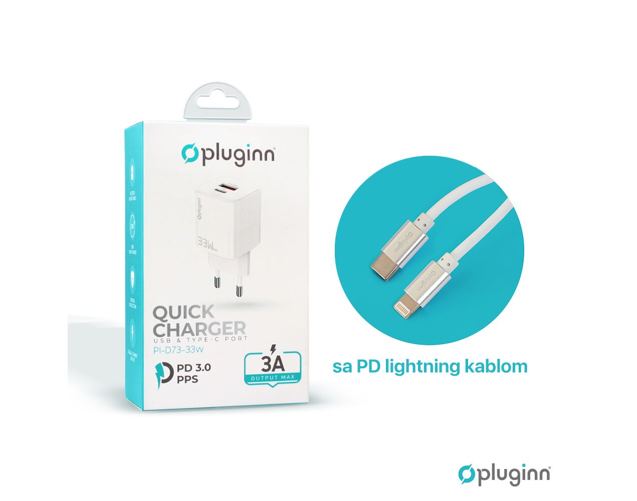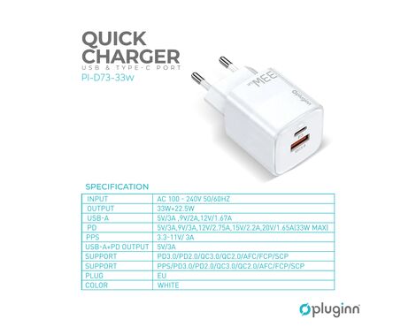 Kucni punjac Pluginn PI-D73-33w, GaN, QC3.0 PD3.0, PPS, USB-PD 20W+33W, 53W (total) sa PD iPhone lightning kablom beli CE - Kućni punjač je sastavni deo svakodnevnog korišćenja mobilnog telefona. Od kvalitetnog punjača zavisi radni vek baterije, tako da će Vam ovaj punjač omogućiti brzo i kvalitetno punjenje. Kućni punjač za Kucni punjac Pluginn PI-D73-33w, GaN, QC3.0 PD3.0, PPS, USB-PD 20W+33W, 53W (total) sa PD iPhone lightning kablom beli CE je atestiran, dolazi sa garancijom i vrhunskog je kvaliteta.
