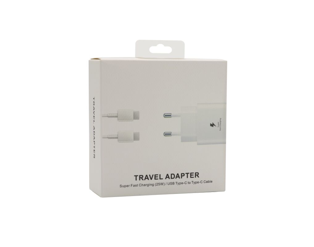 Kucni punjac Super Fast 25W/3A - Samsung PD + kabl type-C na Type C beli HQ (MS) - Kućni punjač je sastavni deo svakodnevnog korišćenja mobilnog telefona. Od kvalitetnog punjača zavisi radni vek baterije, tako da će Vam ovaj punjač omogućiti brzo i kvalitetno punjenje. Kućni punjač za Kucni punjac Super Fast 25W/3A - Samsung PD + kabl type-C na Type C beli HQ (MS) je atestiran, dolazi sa garancijom i vrhunskog je kvaliteta.