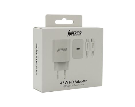 Kucni punjac Superior SU-4500 45W Type C na Type C 5A beli (MS) - Kućni punjač je sastavni deo svakodnevnog korišćenja mobilnog telefona. Od kvalitetnog punjača zavisi radni vek baterije, tako da će Vam ovaj punjač omogućiti brzo i kvalitetno punjenje. Kućni punjač za Kucni punjac Superior SU-4500 45W Type C na Type C 5A beli (MS) je atestiran, dolazi sa garancijom i vrhunskog je kvaliteta.